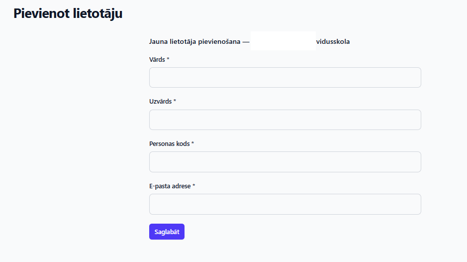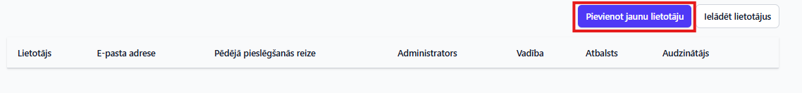 - Skolas lietotāji sadaļā spiediet uz Pievienot jaunu lietotāju